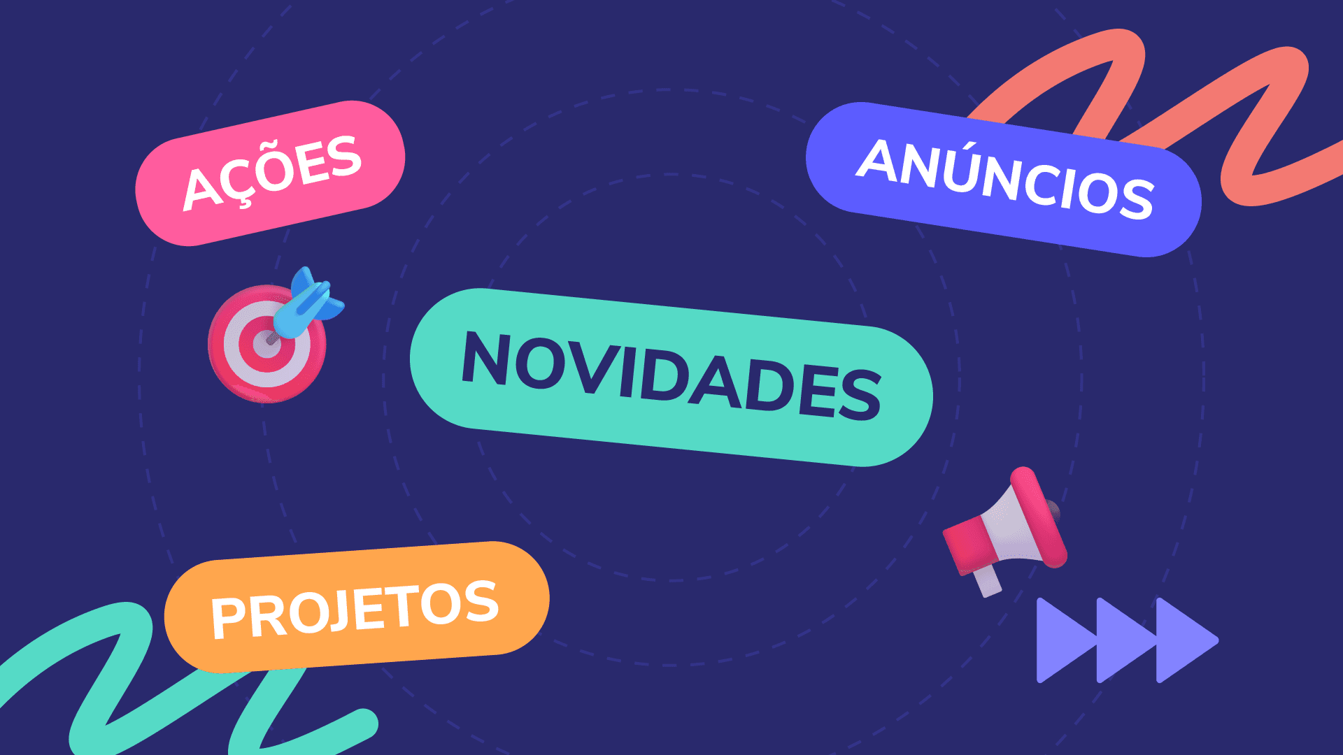 O primeiro passo foi desdobrar a identidade visual e separar as cores, fontes e os elementos gráficos que eu poderia usar para animar. Como a equipe me deu alguma liberdade para criar além do material inicial, adicionei alguns emojis e criei outros elementos visuais, sempre com a preocupação de manter a consistência para não afetar a estética do Conecta.